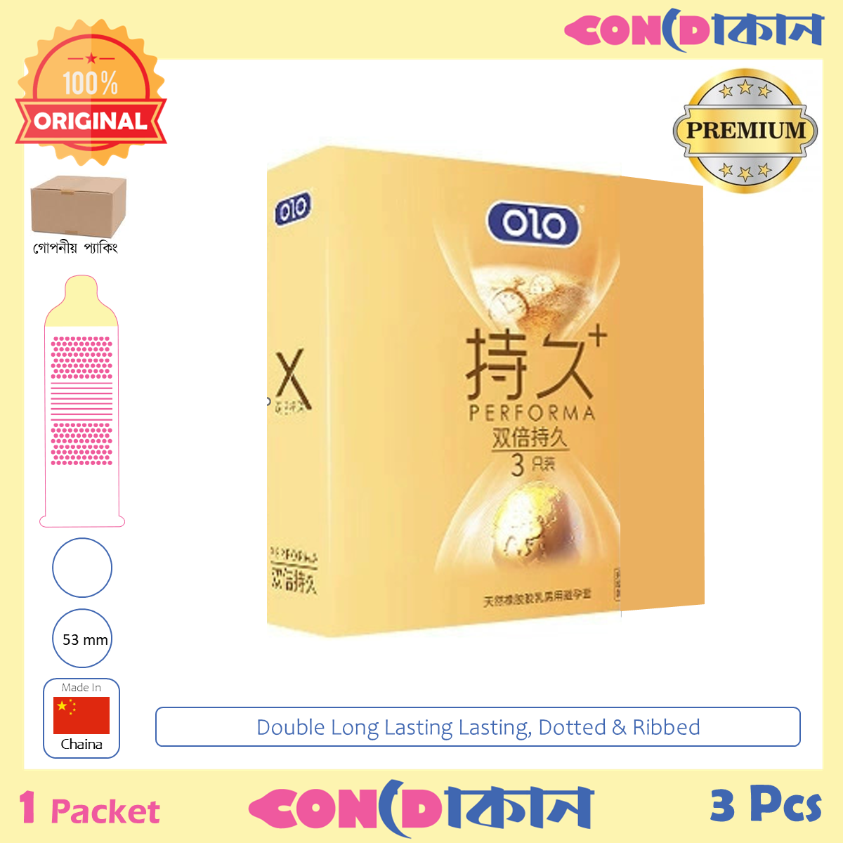 OLO Double Lasting Performa Condom1 Pack (3 Pcs)