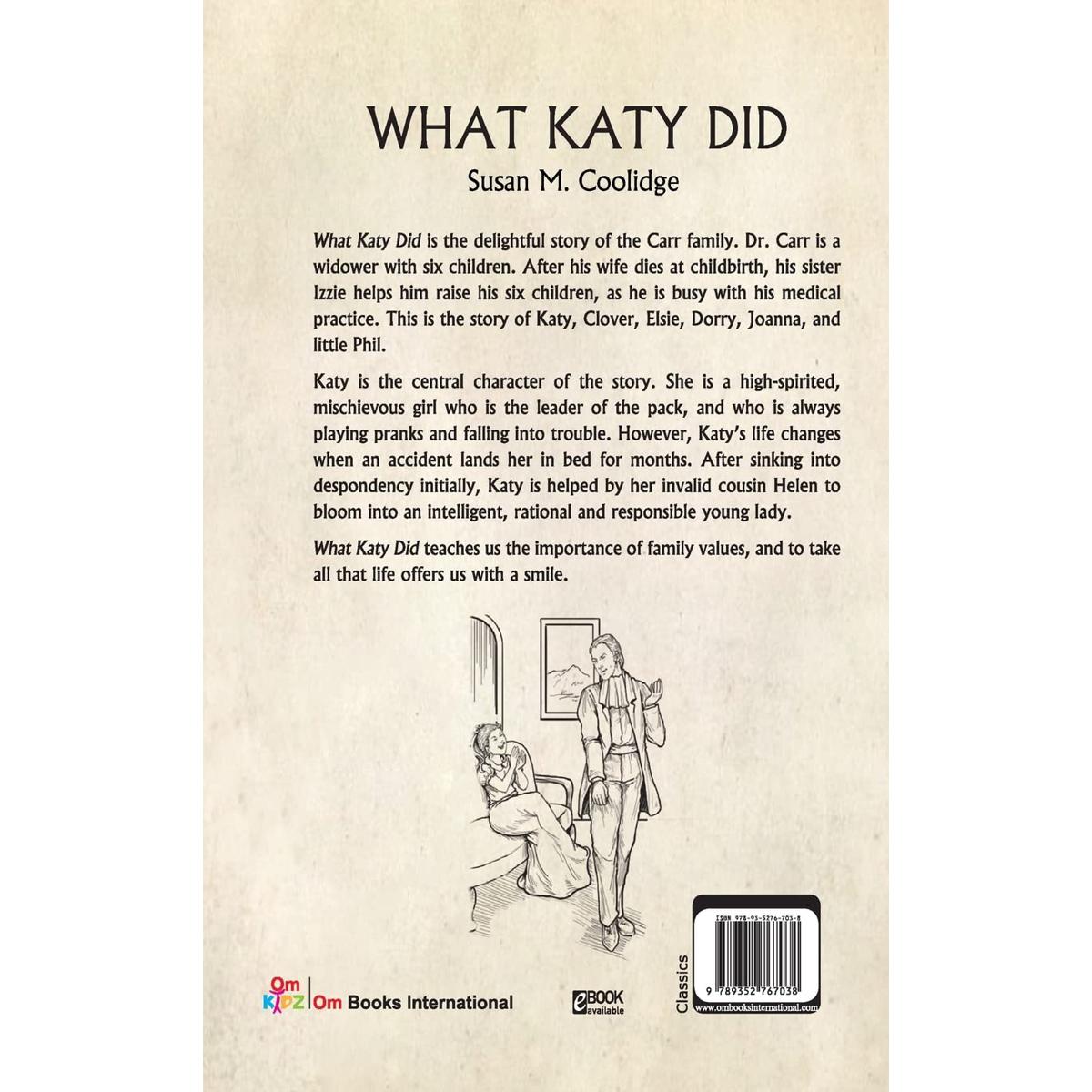 What br>katy did is the delightful story of the Carr family. Dr. Carr is a br>Widower with six children. After his wife dies at childbirth, his sister Izzie helps him raise his six children, as he is busy with his medical practice. This is the story of br>katy, Clover, Elsie, dorry, Joanna, and little Phil. Br>katy is the central character of the story. She is a high-spirited, mischievous girl who is the leader of the pack, and who is always playing pranks and falling into trouble. However, katy’s life changes when an accident lands her in bed for months. After sinking into despondency initially, br>katy is helped by her invalid cousin Helen to Bloom into an intelligent, rational and responsible young lady. What br>katy did teaches us the importance of family values, and to take all that life offers us with a smile.