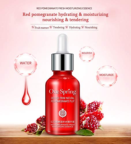 ONE SPRING essence red pomegranate serum face cream whitening/moisturizing remove dark spots derum liquid tights serum The secret of getting watery& tendering skin Drops of essence Nourishing and get smoothness skin Watery Hydrating& moisturizing Red pomegranate can supply water to skin, lock water. Tendering Nourishing& moisturizing Nourishing skin deeply, let skin to be silky and smoothness. Nourishing Deep nourishing Exquisite character, tendering skin without uptight and oil. How to use One Spring Serum: