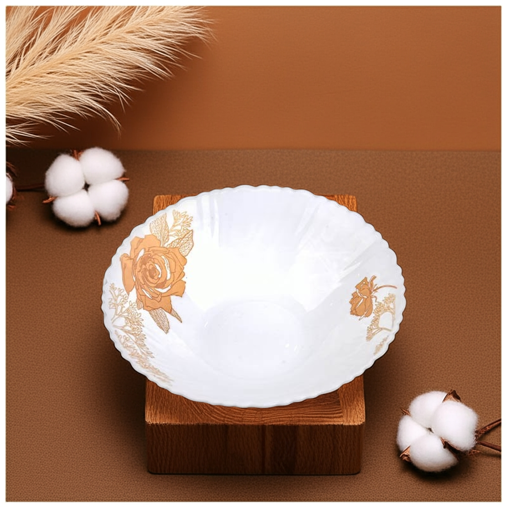 Elevate your tableware collection with the 9.5-inch Opal Glass Flat Bowl from Chinbull. Crafted with durable tempered Pyrex glass, this stylish bowl features a vibrant printed design, ideal for serving daily meals or presenting dishes on special occasions.