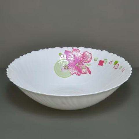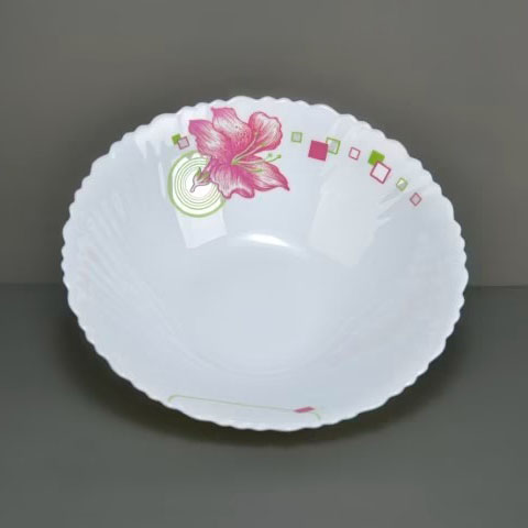 Brand: Opal Glass (Chinbull) Origin: China Material: Tempered Pyrex Glass Color: Printed Size: 9.5 Inches Type: Flat Bowl Package Contains: 1 Piece Weight: 0.3 kg