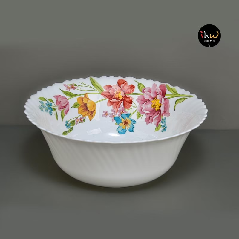 Enhance your dining table with the elegant Opal Glass 9″ Printed Serving Deep Bowl from Chinbull. Made with durable Pyrex material and a stylish printed design, this bowl is ideal for serving a variety of dishes at home or for special occasions.