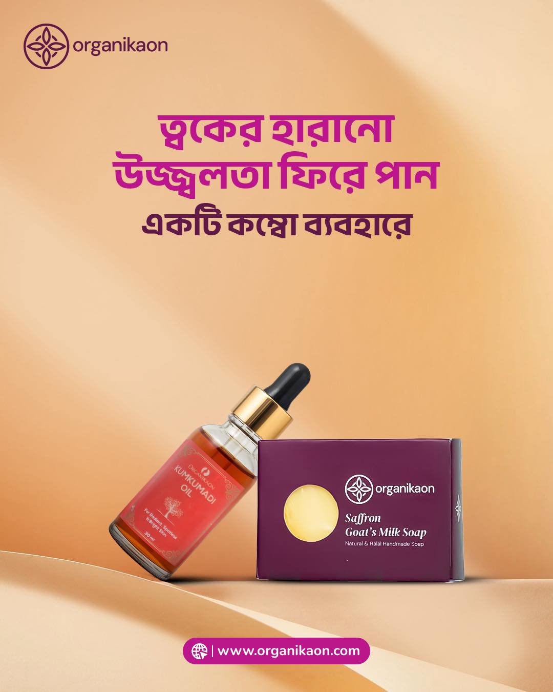 Organikaon Kumkumadi Oil & Saffron Goat Milk Soap Combo combines two of Organikaon’s best-selling products to give you a complete skincare routine for a brighter, more youthful complexion.
