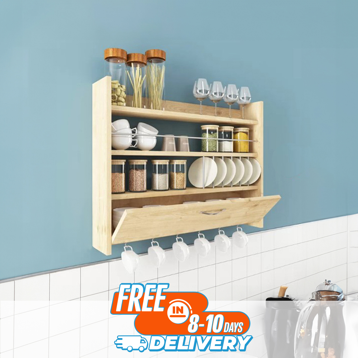 Furnisha Organize Your Kitchen With The Multipurpose Wall Mounted Shelves- Tea Cup Hooks Included For Added Convenience