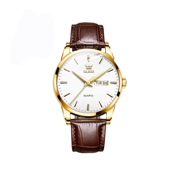 Orginal Olevs 6898 leather Strap Watch for Men-Brown & White