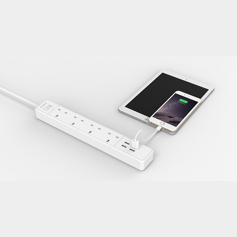 Orico OSC-4A4U-UK Surge Protector 4 UK Socket with 4 USB Charging Port 4A with UK adapter Home Office Power Strips
