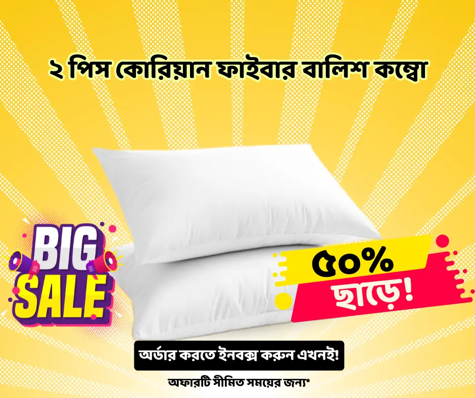 যারা একসাথে ২টি হাই-কোয়ালিটি বালিশ কিনতে চান অথবা পুরো পরিবারের জন্য বালিশ নিতে চান – তাদের জন্য আমাদের এই কোরিয়ান ফাইবার বালিশ কম্বো (২ পিস) সবচেয়ে জনপ্রিয় ও সাশ্রয়ী অপশন!