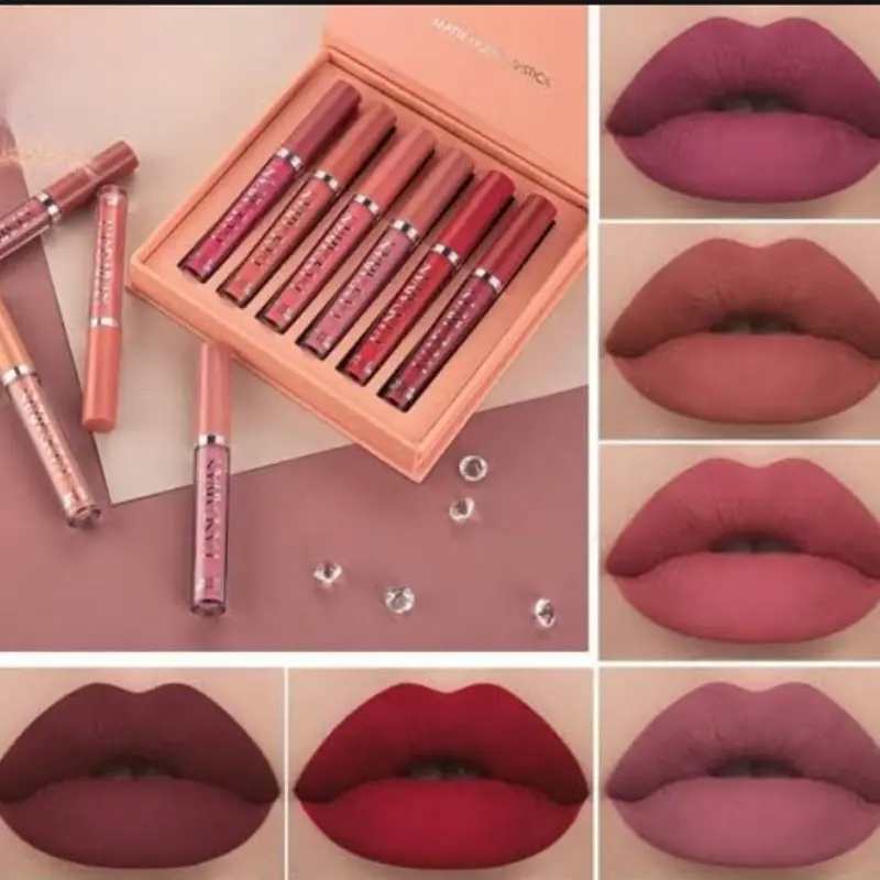 HANDAIYAN 6 Colors Long Lasting Velvet Lips Tint Liquid Lipsticks Waterproof Non-Stick Cup Lipgloss Gift Set (A)