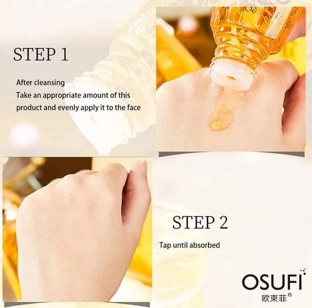 Cleanse: Start with clean, dry skin. Apply a few drops of OSUFI Collagen Face Serum to your fingertips.