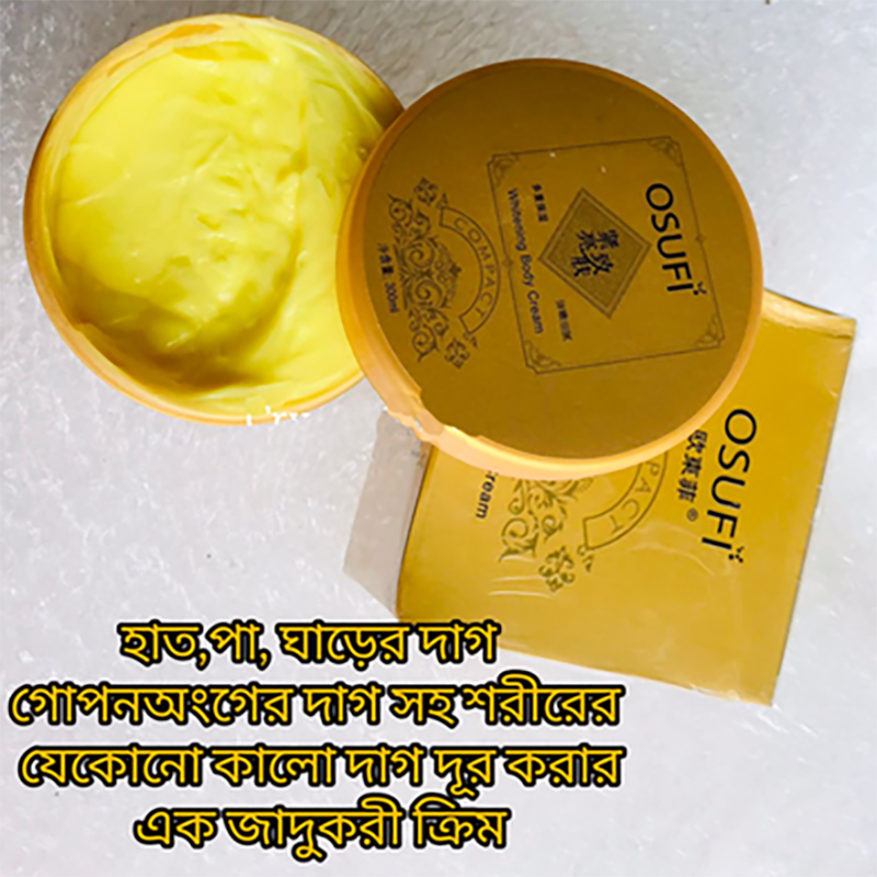 ওসুফি হোয়াইটেনিং ফেস প্যাক (বাদশাহ হোয়াইটেনিং ও ময়েশ্চারাইজিং ফেস প্যাক - ৩০০ মিলি) একটি বিলাসবহুল স্কিনকেয়ার পণ্য যা ত্বকের উজ্জ্বলতা এবং আর্দ্রতা বৃদ্ধির জন্য ডিজাইন করা হয়েছে। প্রাকৃতিক উপাদান এবং হোয়াইটেনিং এজেন্টে সমৃদ্ধ এই ফেস প্যাক ত্বকের উজ্জ্বলতা বৃদ্ধি করে, ত্বকের টোন সমান করে এবং ডার্ক স্পট কমায়। এর হাইড্রেটিং ফর্মুলা ত্বককে গভীরভাবে পুষ্টি ও পুনর্জীবিত করে, ফলে ত্বক হয় নরম, মসৃণ এবং উজ্জ্বল। সব ধরনের ত্বকের জন্য উপযোগী, এটি একটি রিফ্রেশড এবং উজ্জ্বল লুক পাওয়ার জন্য সেরা