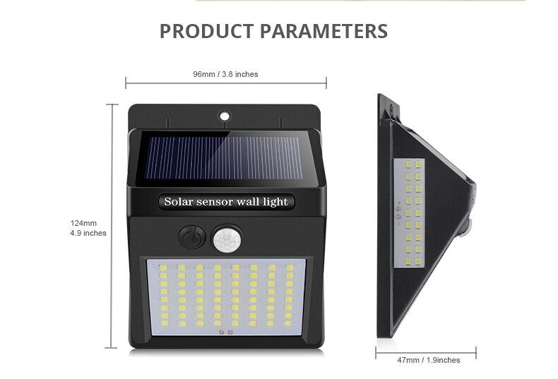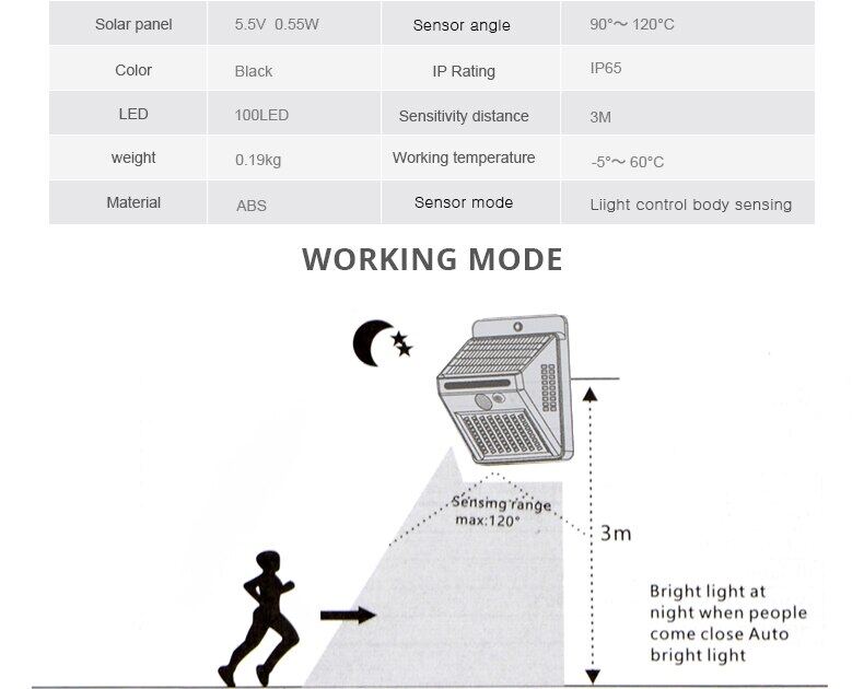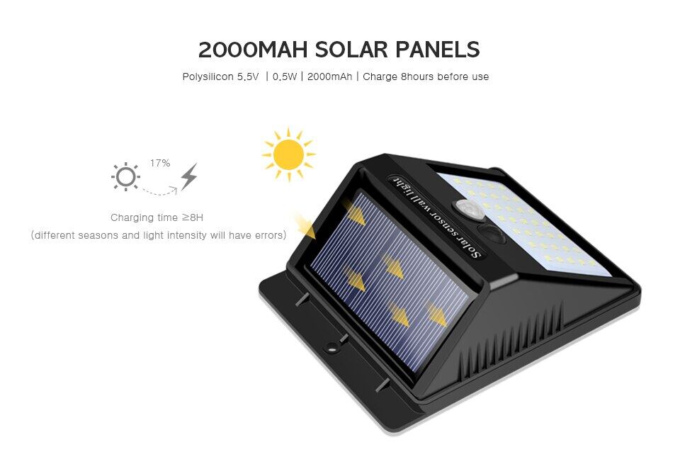 2 sensors: Light sensor and and sensitive Motion sensor, save energySolar Powered, easy for installationAuto identify day or nightSwitch inside for saving power during shipmentGreat useful lighting for your garden, yard, aisle, porch, patio, driveway etc...Charge by free sunlight and light in dark when people near around 10ft closeGreen power, Green lightingUV protect ABS body, never fade