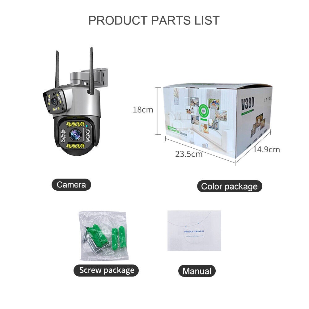 - Dual Lens Security Camera V380 Pro Smart Home 2MP Auto Tracking Waterproof Outdoor Wireless WIFI IP Camera