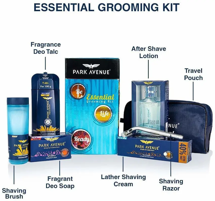 - Park Avenue presents best in class grooming solutions for men who want to be ready for life, always. This value pack of 5 essential products caters to a man's daily grooming needs packed together in a Travel Pouch