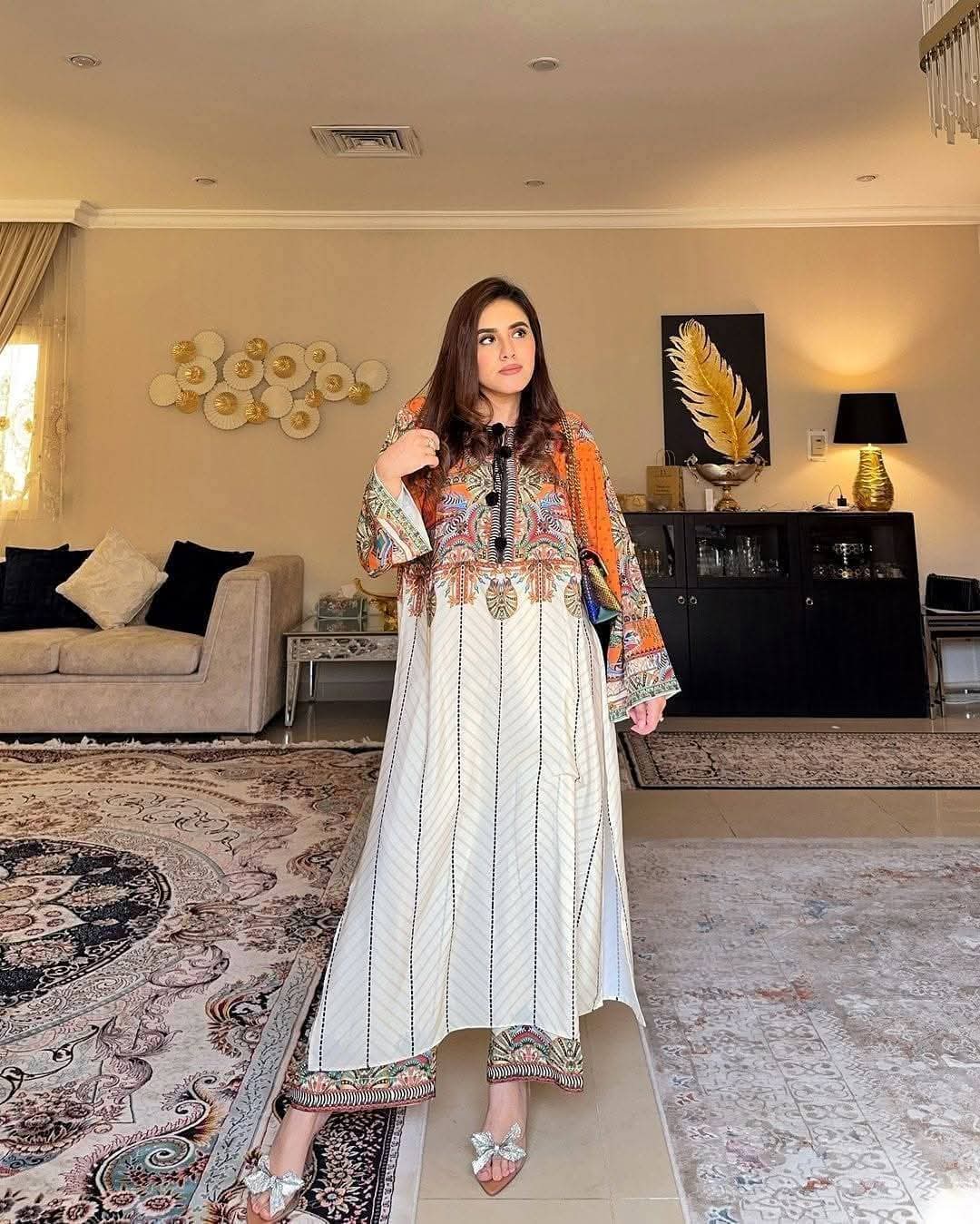 Pakistan designed Co-ords Stitched 2pices collection Fabric: synthetic (cotton and silk) cotton for women's and girls - White
