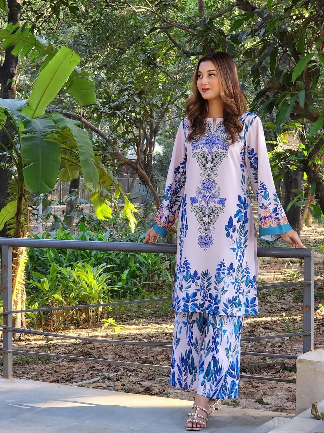Pakistan designed Co-ords Stitched 2pices collection Fabric: synthetic (cotton and silk) cotton for women's and girls - White