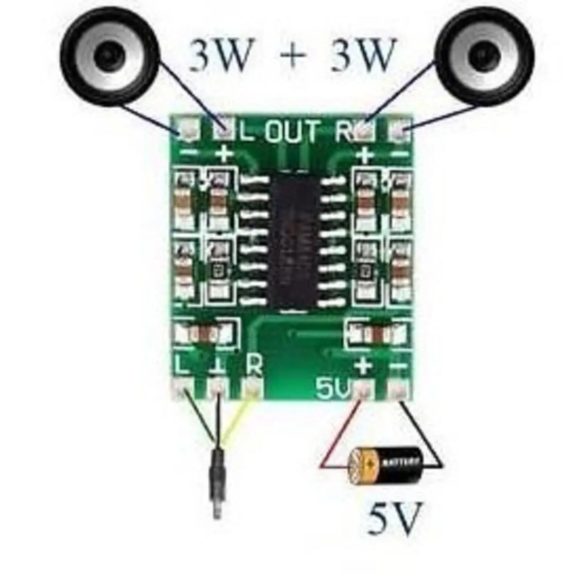 - 5v power supply can output 3w +3 w power