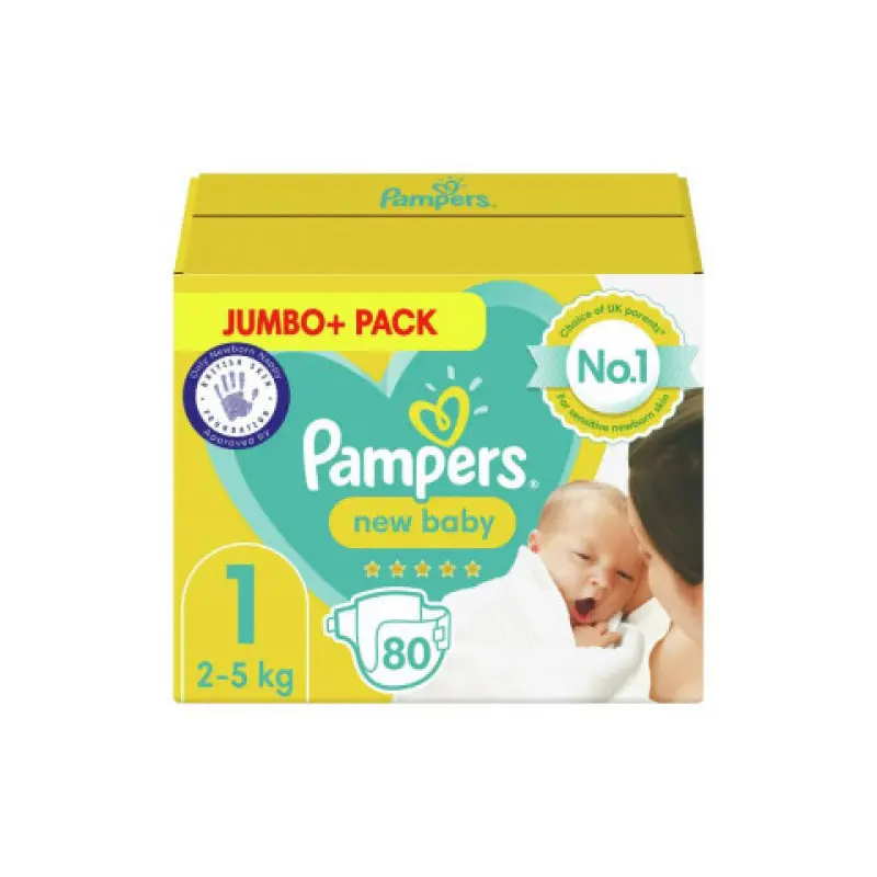 Pampers New Baby Size 1, 80 Nappies, 2kg-5kg, Essential Pack Pampers’ #1 protection for sensitive newborn skin. Did you know your newborn’s skin can be up to 30% thinner than adult skin? That makes it extra sensitive to friction and irritation. Pampers New Baby nappies bring you Pampers' softest, most caring protection for sensitive newborn skin. They also come with soft flexi-side wings & double leg cuffs that gently adapt to your baby’s shape to maximise comfort. Finally, their Quick Dry core absorbs liquid instantly to keep sensitive skin dry and protected. The only newborn nappy approved by British Skin Foundation.