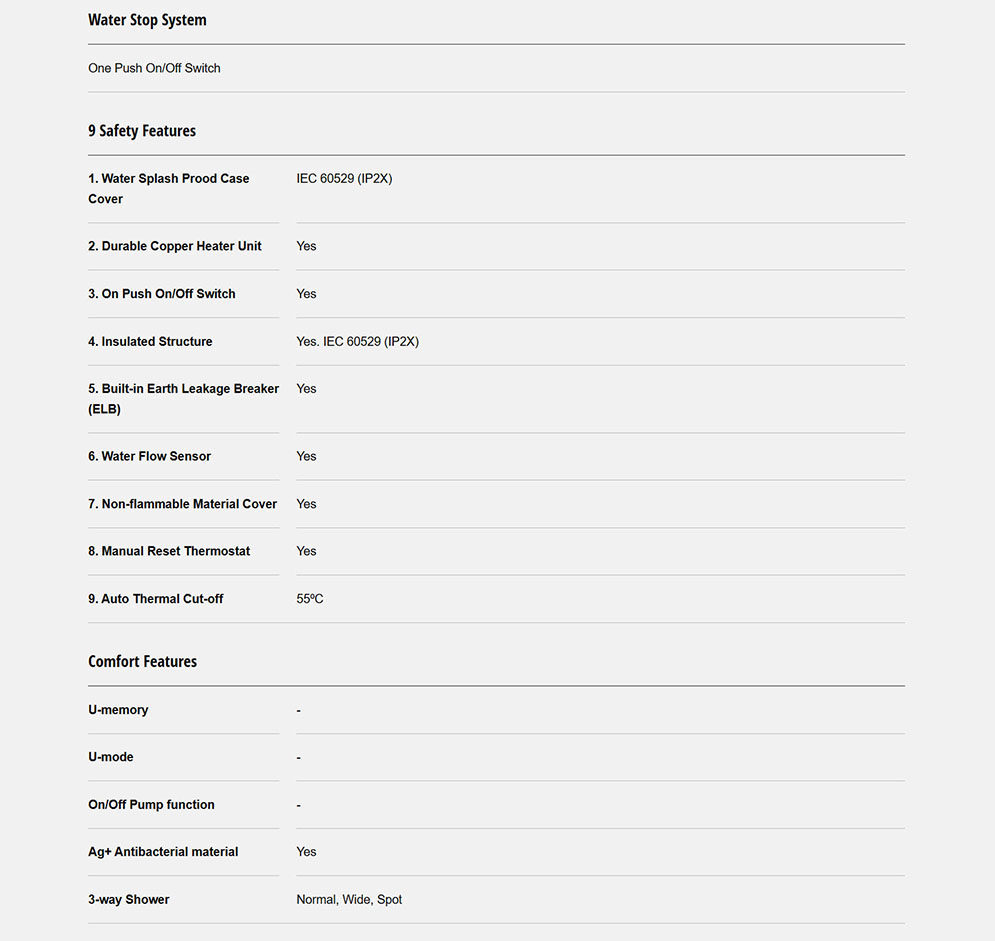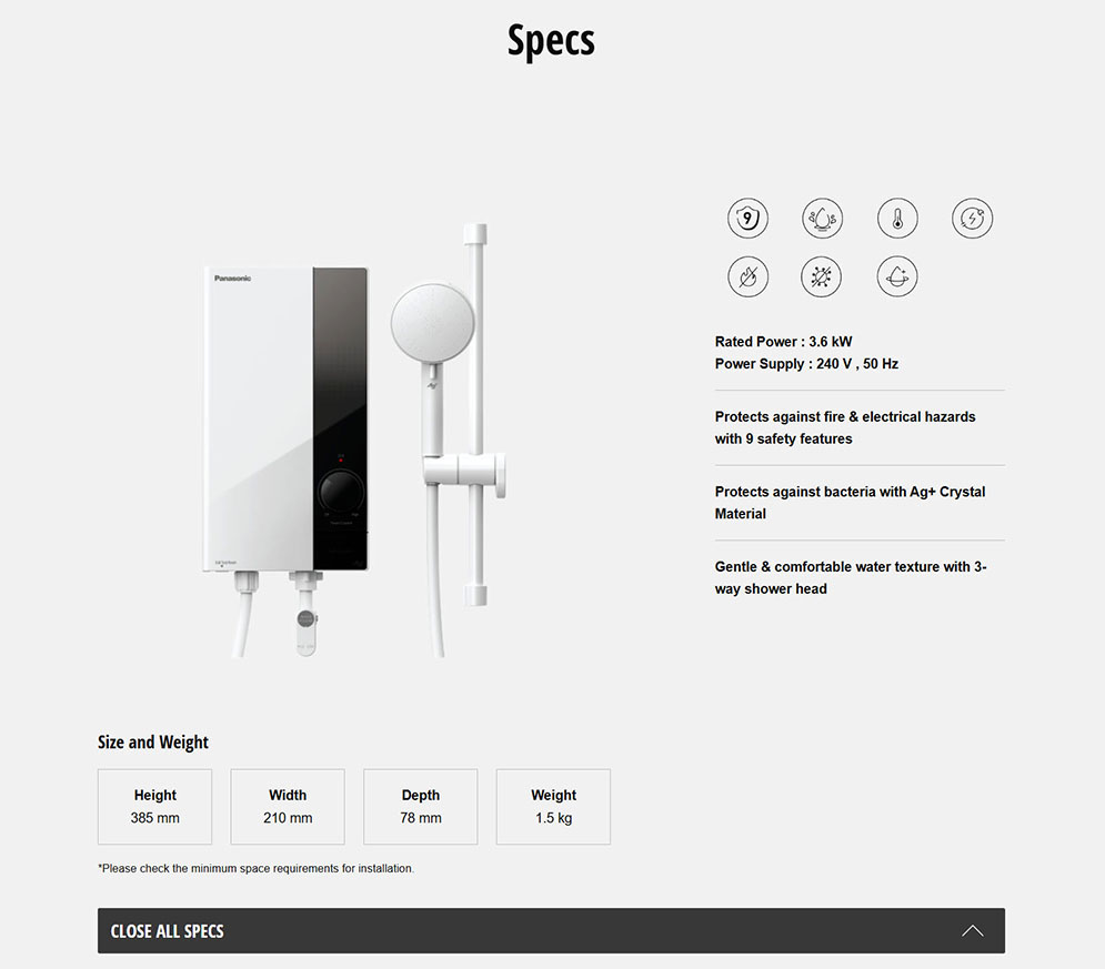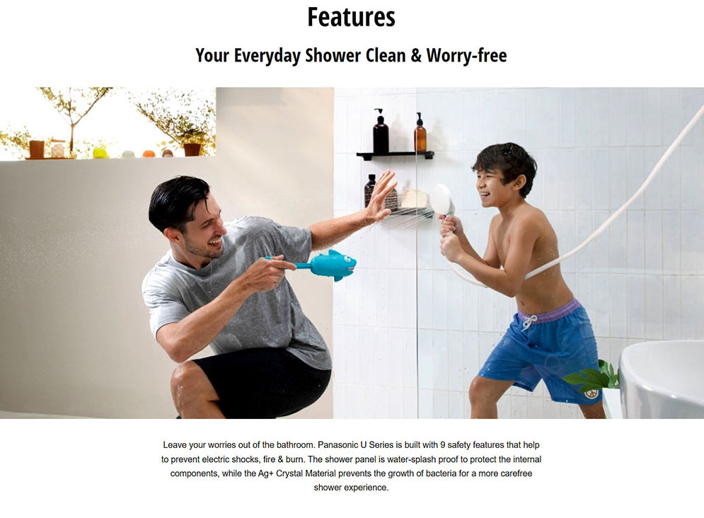 Panasonic DH-3US1MW Home Shower U Series Blissful Showers for Comfort & Wellbeing