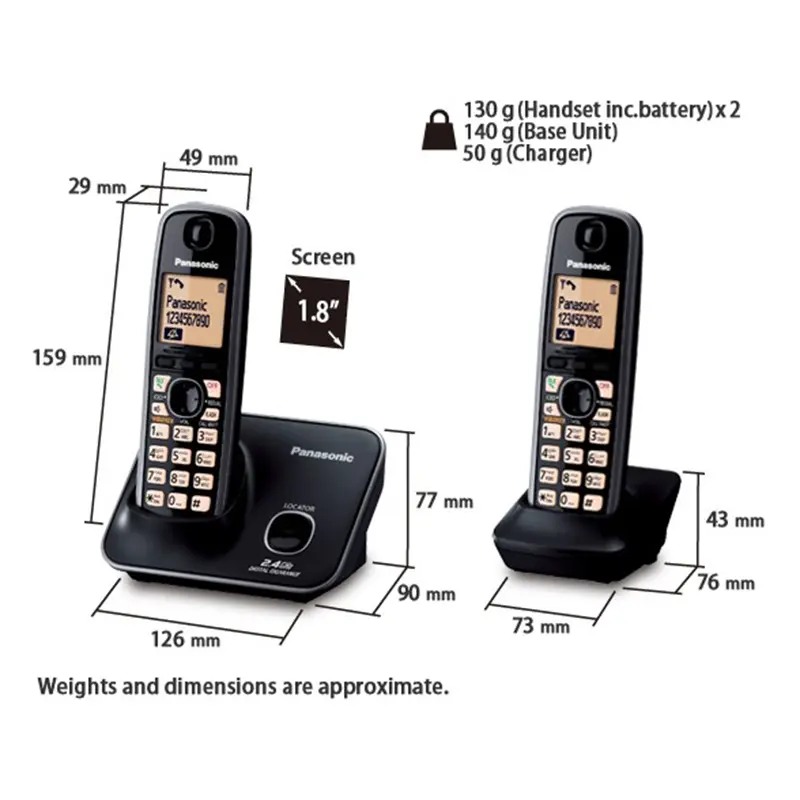 Enjoy the convenience of wireless communication with the Panasonic KX- TG3712BX cordless phone. It is a highly useful and affordable communication device, designed with the end-user in mind. This phone offers not just one but two handsets to connect to the phone line. These handsets have a 1.8-inch LCD display that show basic information like the caller ID and time.