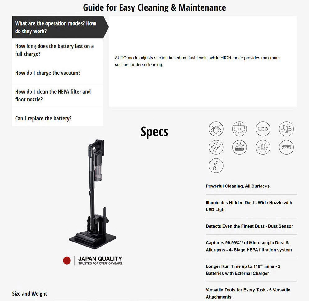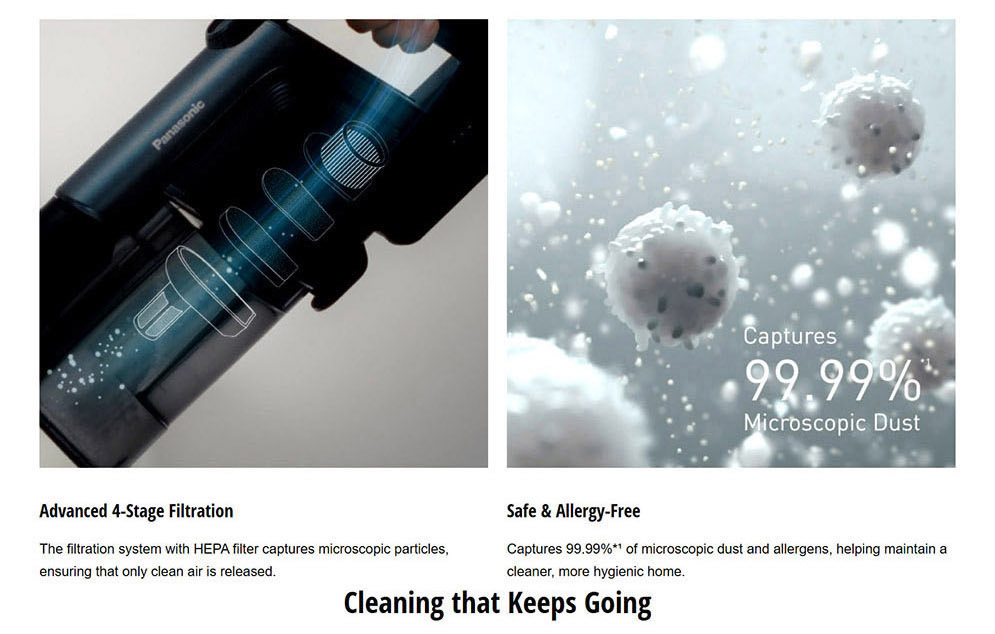 Panasonic MC-SBR70 Cordless Stick Vacuum Cleaner, Powerful, Hygienic, Versatile