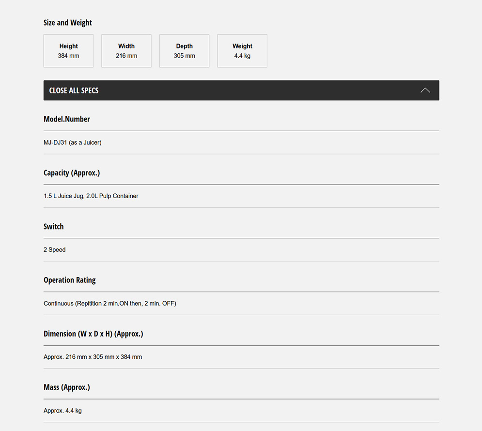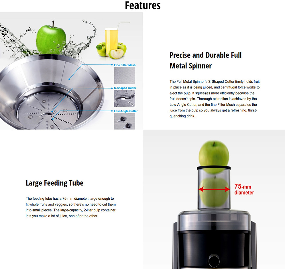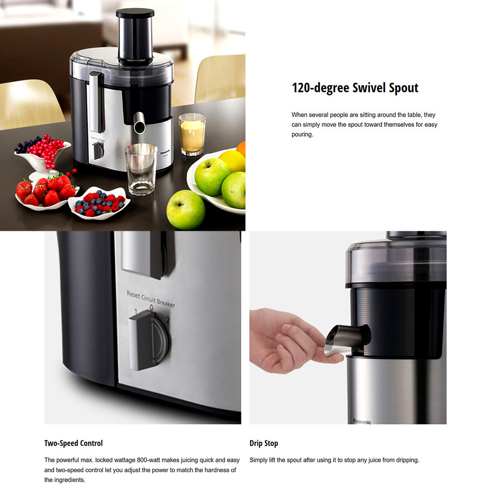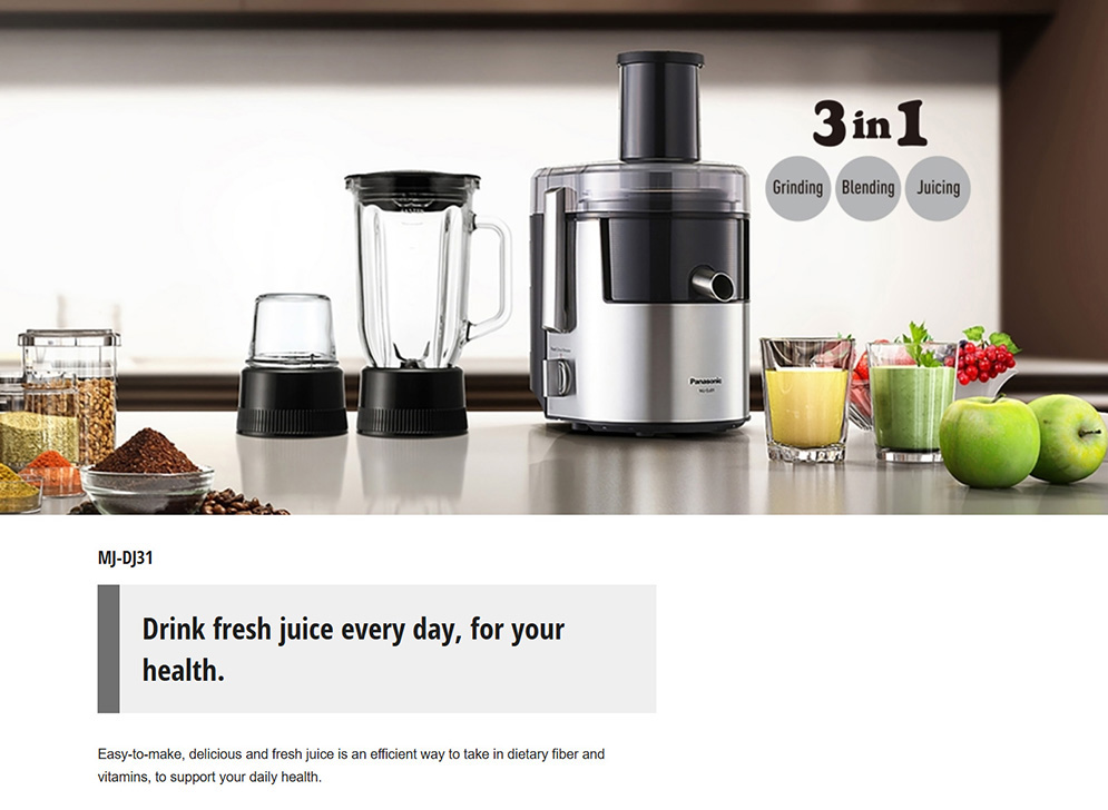 Panasonic MJ-DJ31 3-in-1 Juicer Extractor, Blender, and Grinder with Durable Metal Spinner