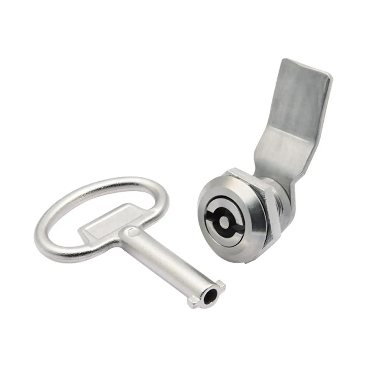 Hex nut, 2.4'' x 0.8'' cam, triangular socket key included. The panel lock is suitable for less than 0.35" thick board. Used widely for drawer, glovebox, electric cabinet or other security equipment.