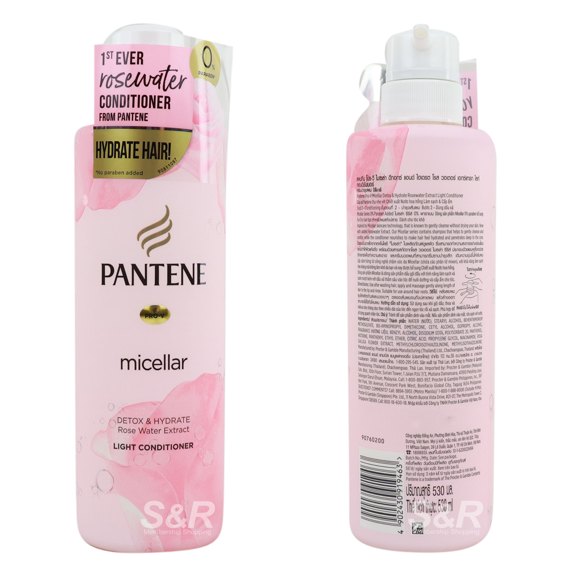 0% Silicones, parabens and dyes. Nutrient-infused Pro-V formula with Pro Vitamin B5 & B3, anti-oxidants,micelles and rose water extract from Rosa Gallica.Apply a small amount of conditioner to clean, damp hair. Gently massage into hair, focusing on the ends. Leave in for a few minutes, then rinse thoroughly.