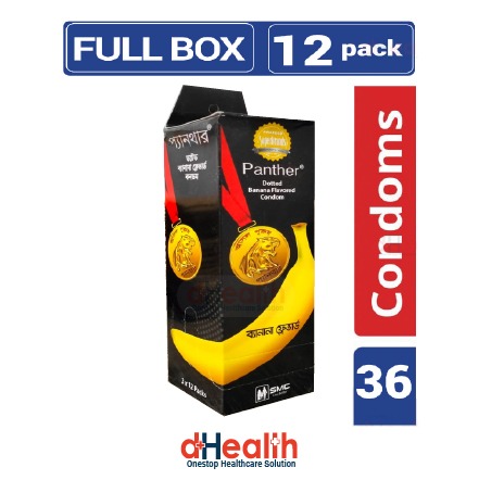 প্যান্থার ডটেড কলা ফ্লেভারড কনডম ফুল বক্স কম্বো প্যাক (3x12)=36pcs