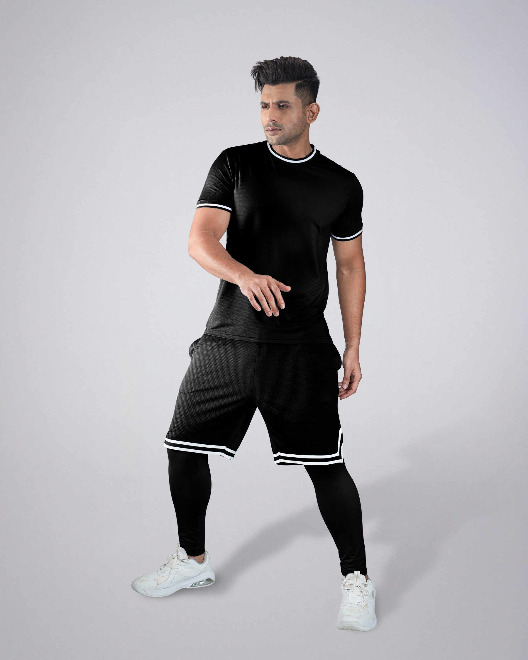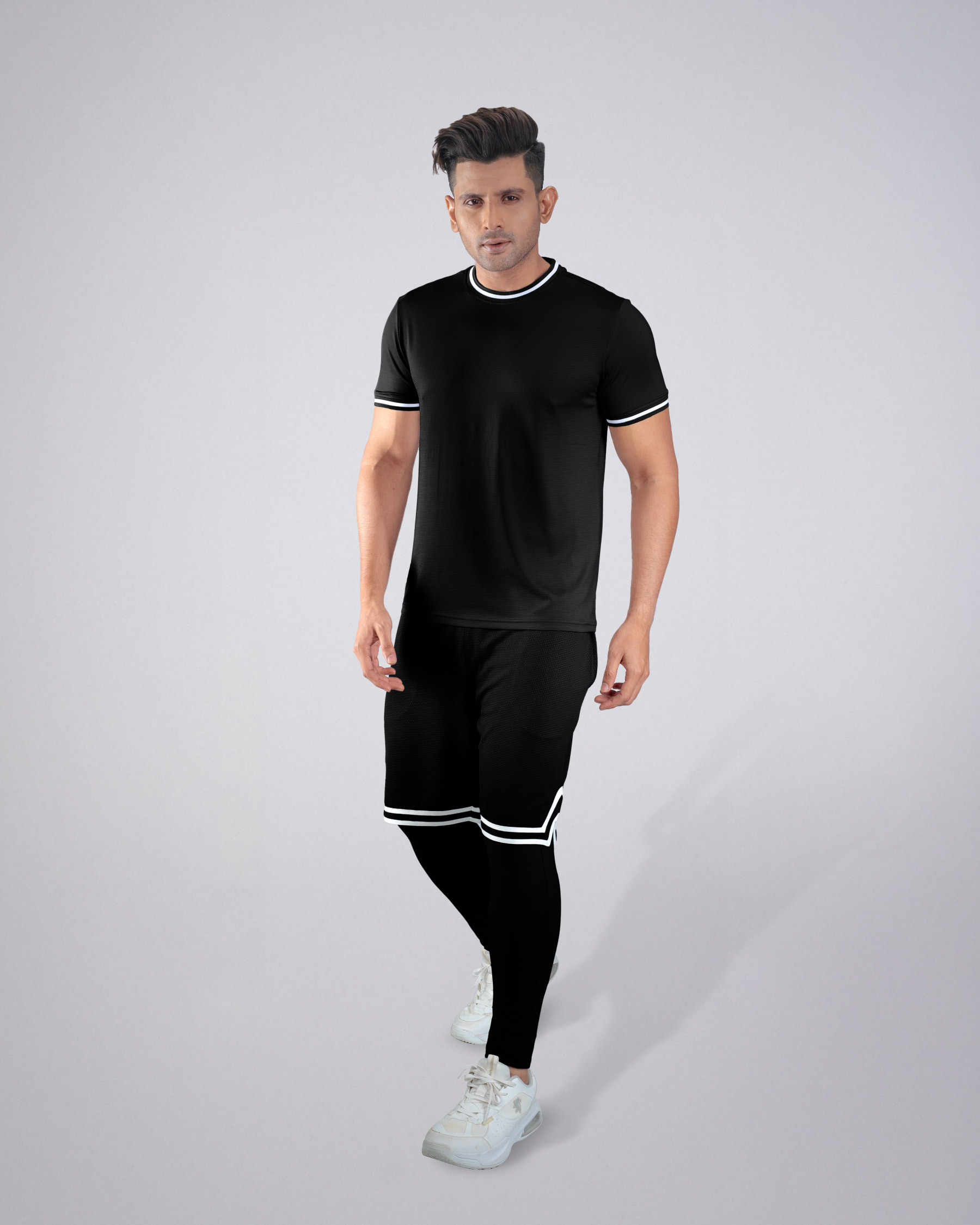 Get the ultimate activewear solution with the Pantoneclo Men’s 3PC Gym Set, including a quick-dry sports T-shirt, breathable shorts, and stretchable layer trouser. Made from 93% Polyester and 7% Spandex, this combo is lightweight, durable, and designed for maximum comfort. The T-shirt features a round neck design, the shorts have an elastic waistband, and the layer trouser offers flexibility and sweat control—perfect for gym, training, running, or casual sportswear. Stay cool, dry, and stylish with this all-in-one fitness combo.