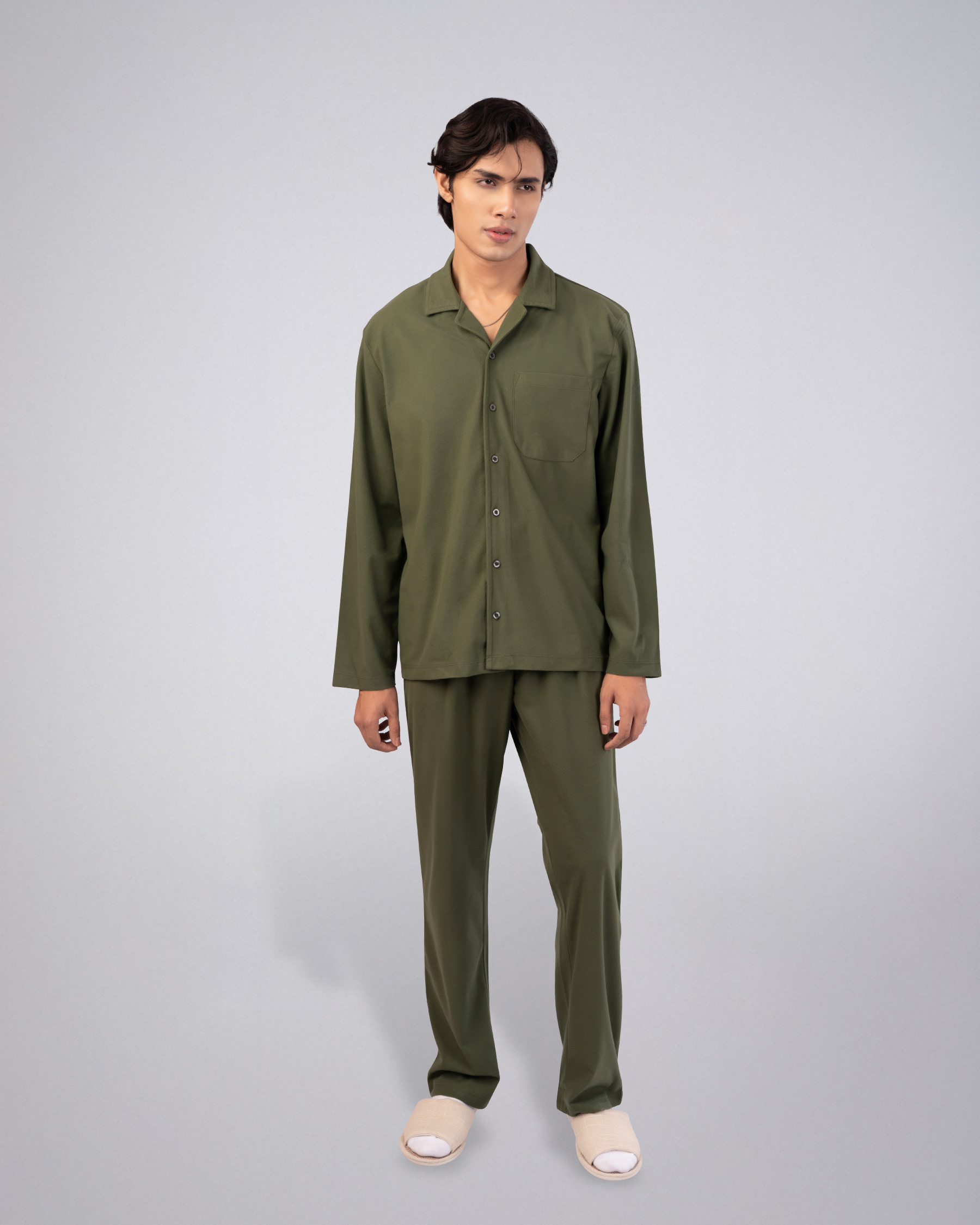 Pantoneclo Men's Sleepwear Set | Long-Sleeve Shirt & Matching Trousers | Soft & Comfortable Nightwear | Loungewear Pajama Set | Two-Piece Night Suit