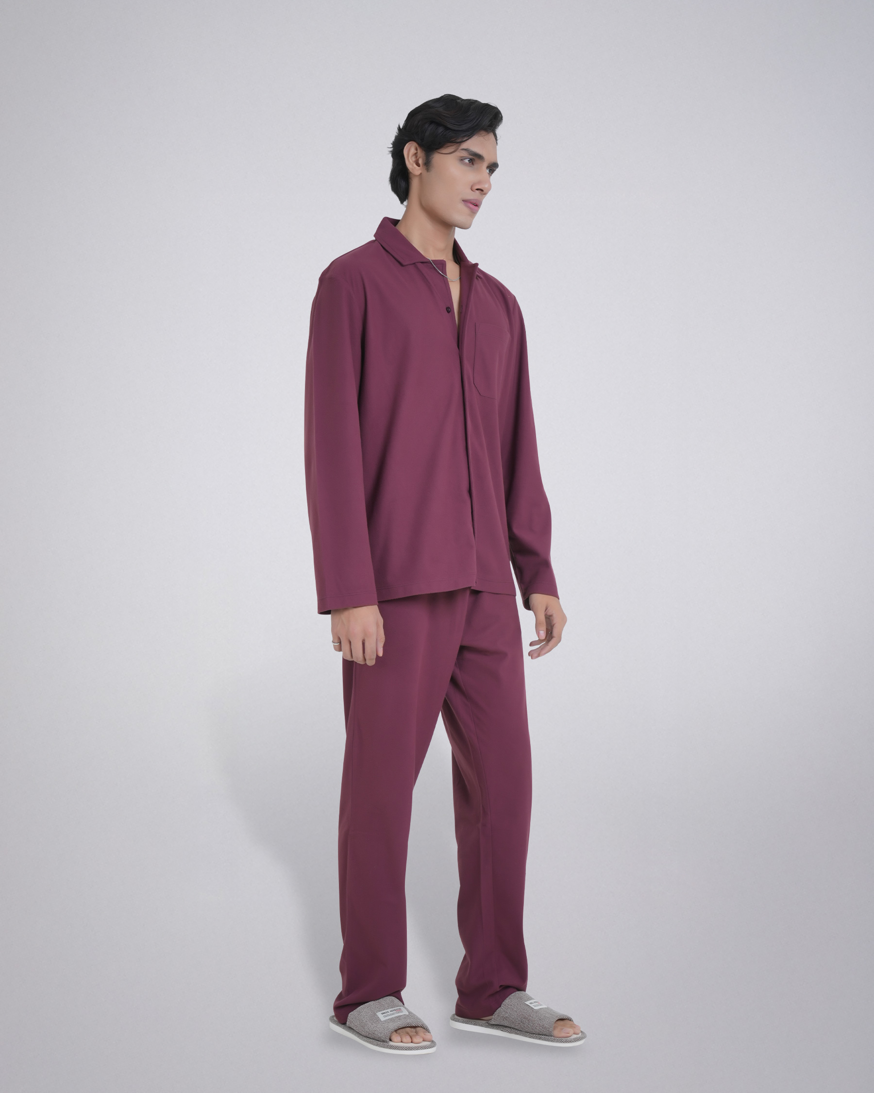 Pantoneclo Men's Sleepwear Set | Long-Sleeve Shirt & Matching Trousers | Soft & Comfortable Nightwear | Loungewear Pajama Set | Two-Piece Night Suit