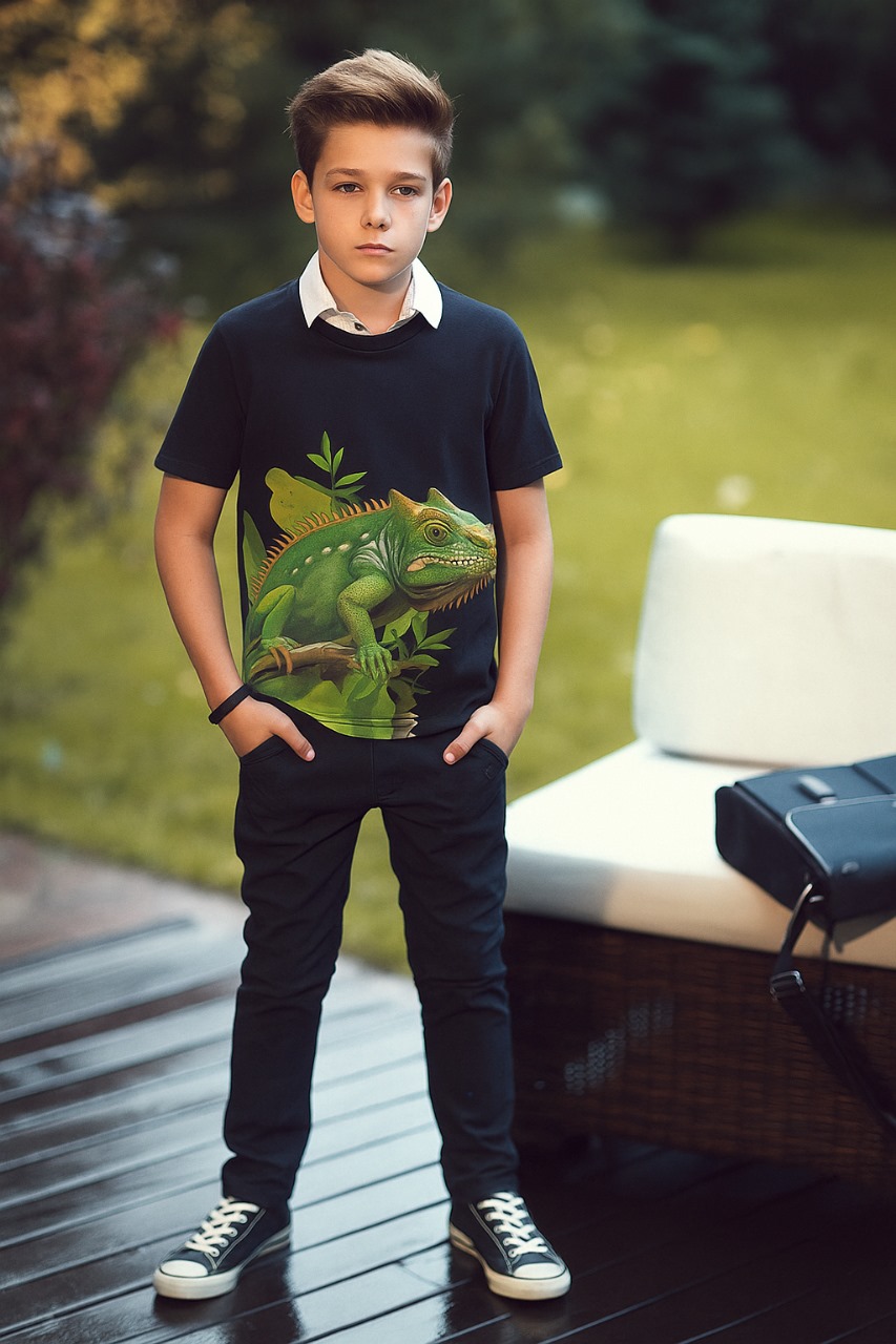 Add a fun and stylish touch to your boy’s wardrobe with this trendy photo printed t-shirt. Made from a breathable blend of 60% cotton and 40% polyester, it ensures all-day comfort and durability. The front side features a vibrant photo print that kids will love, while the back side stays simple with a solid color for a balanced look. Designed with a classic crew neck and short sleeves, it’s perfect for everyday wear, playtime or casual outings. Easy to pair with jeans, shorts or joggers.