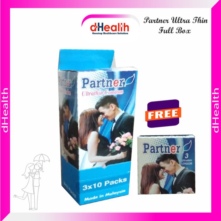 Partner Ultra Thin Condoms Full Box (10*3)=30 Pcs & 1 Box Free (Blue)