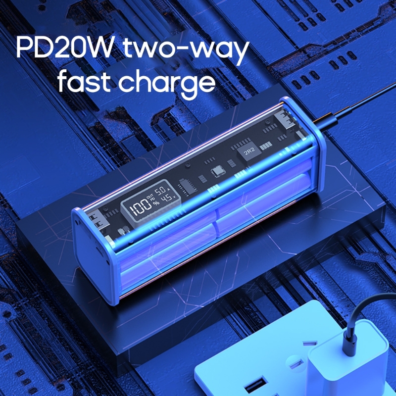 Professional PD22.5W DIY Battery Charger Case Fast Charging Case for 8PCS 18650 Polymer 20800mA Battery Charging Power Bank Box Battery Charger (Without Battery)
