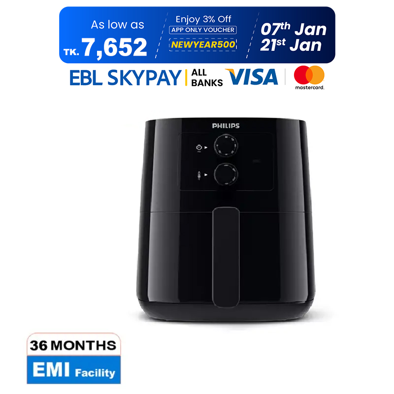 Philips Air Fryer HD9200/90, Uses Up To 90% Less fat, 1400Watt 4.1 Liter, with Rapid Air Technology Black Large