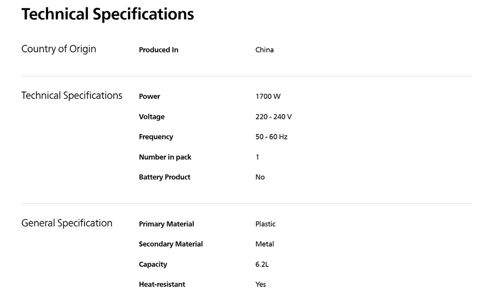 Capacity: 6.2 Liter