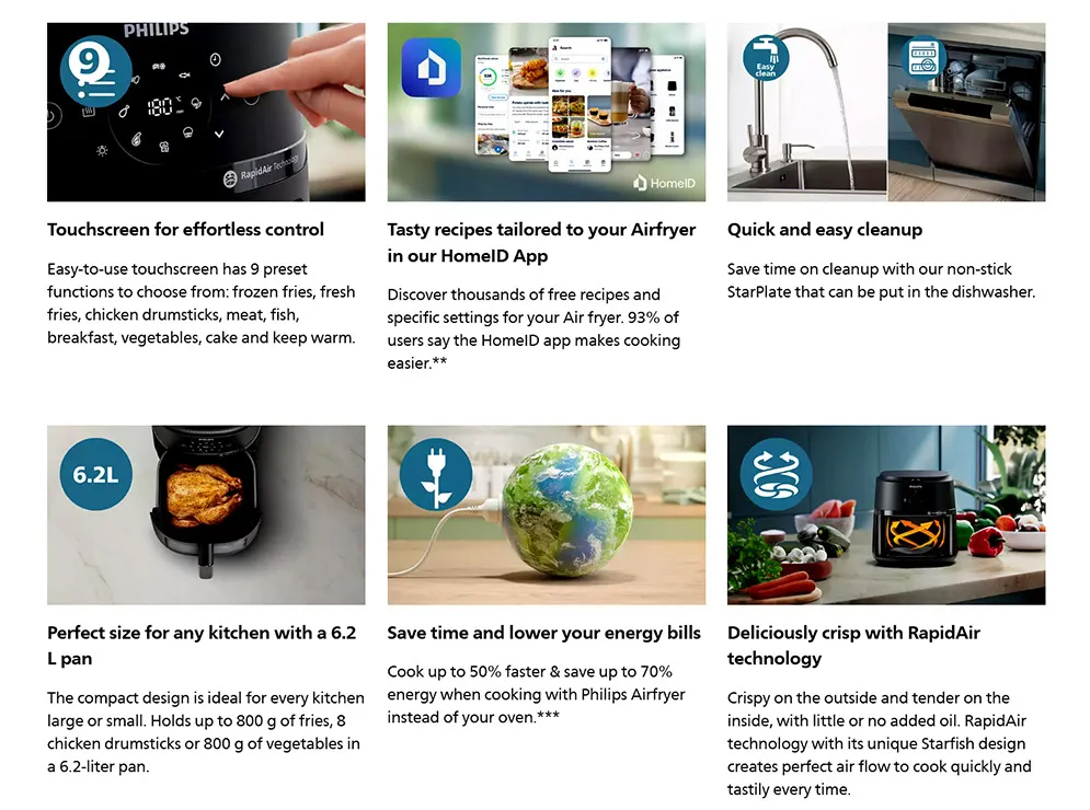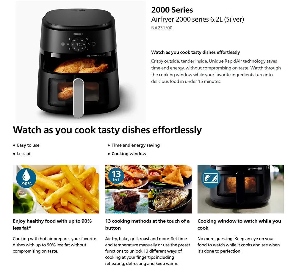 Philips Air fryer NA231 Digital Display 2000 Series with Cooking Window -6.2L