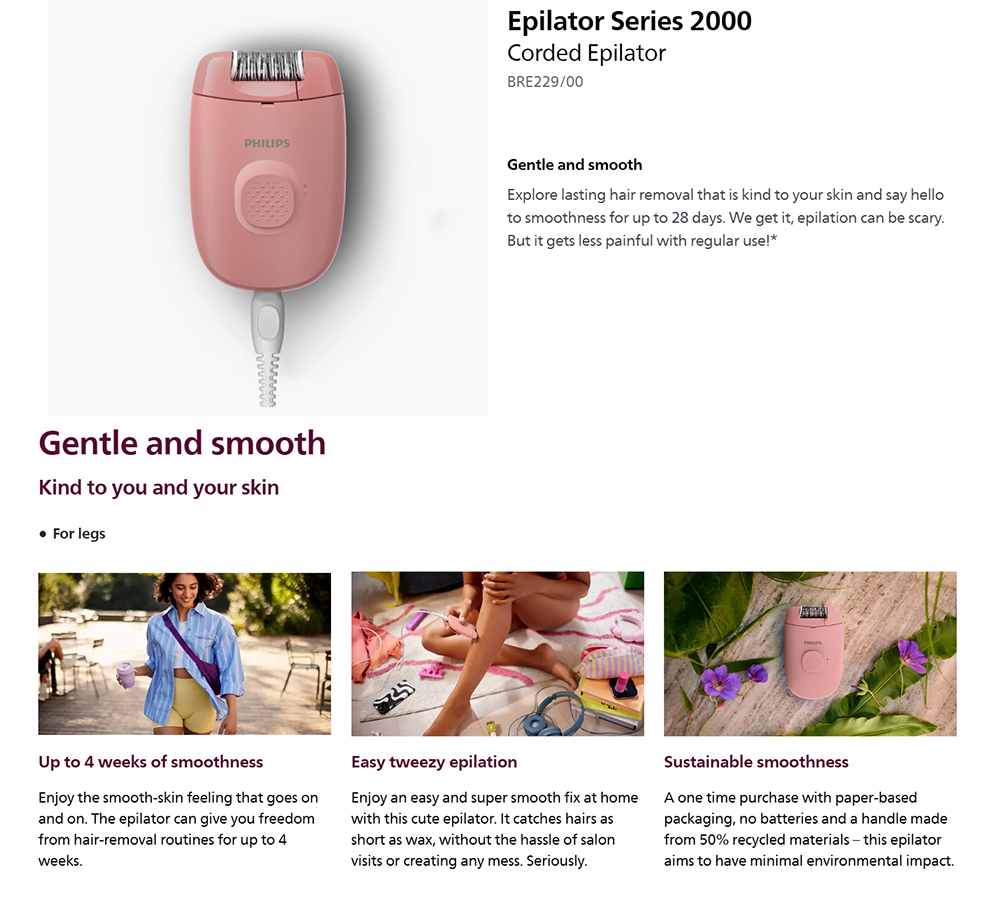 Philips BRE229/00 Satinelle Essential Corded Compact Epilator Series 2000 for Women