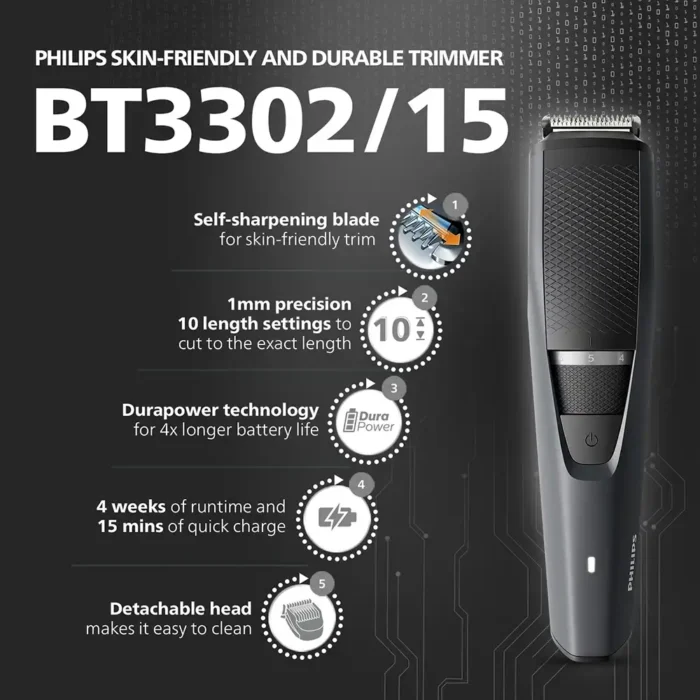 - Key Features of Philips BT3302/13 Beard Trimmer