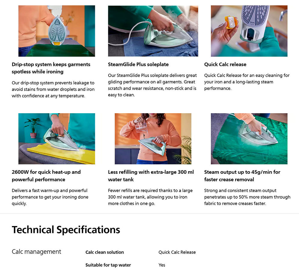 Philips DST7012/76 HV Steam Iron 7000 Series SteamGlide Plus Soleplate
