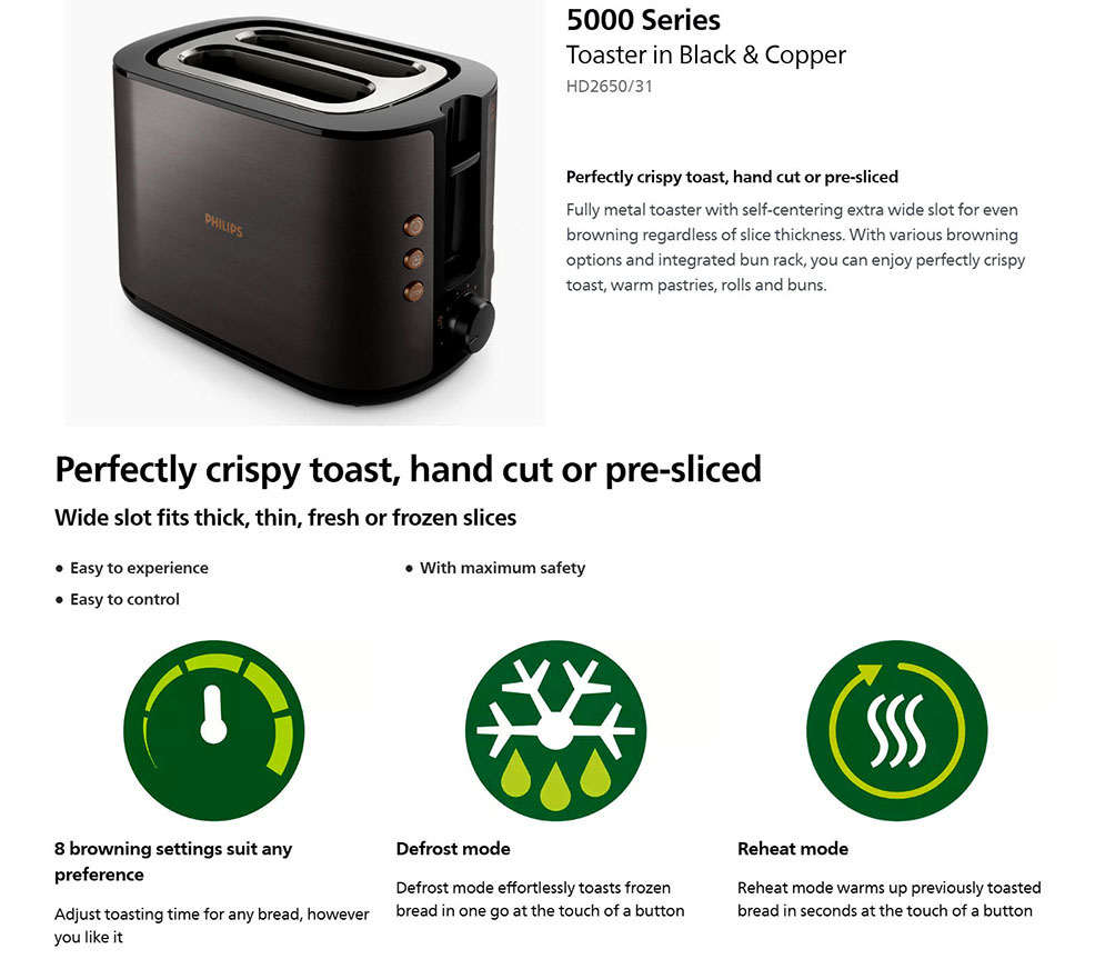 Philips HD2650/31 Toaster 5000 Series in Black & Copper