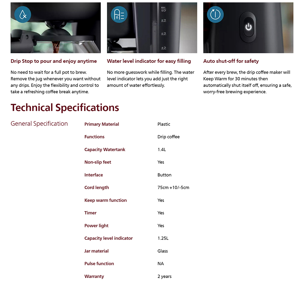 Philips HD7430/90 Drip Coffee Maker Essentials Collection 1000 Series