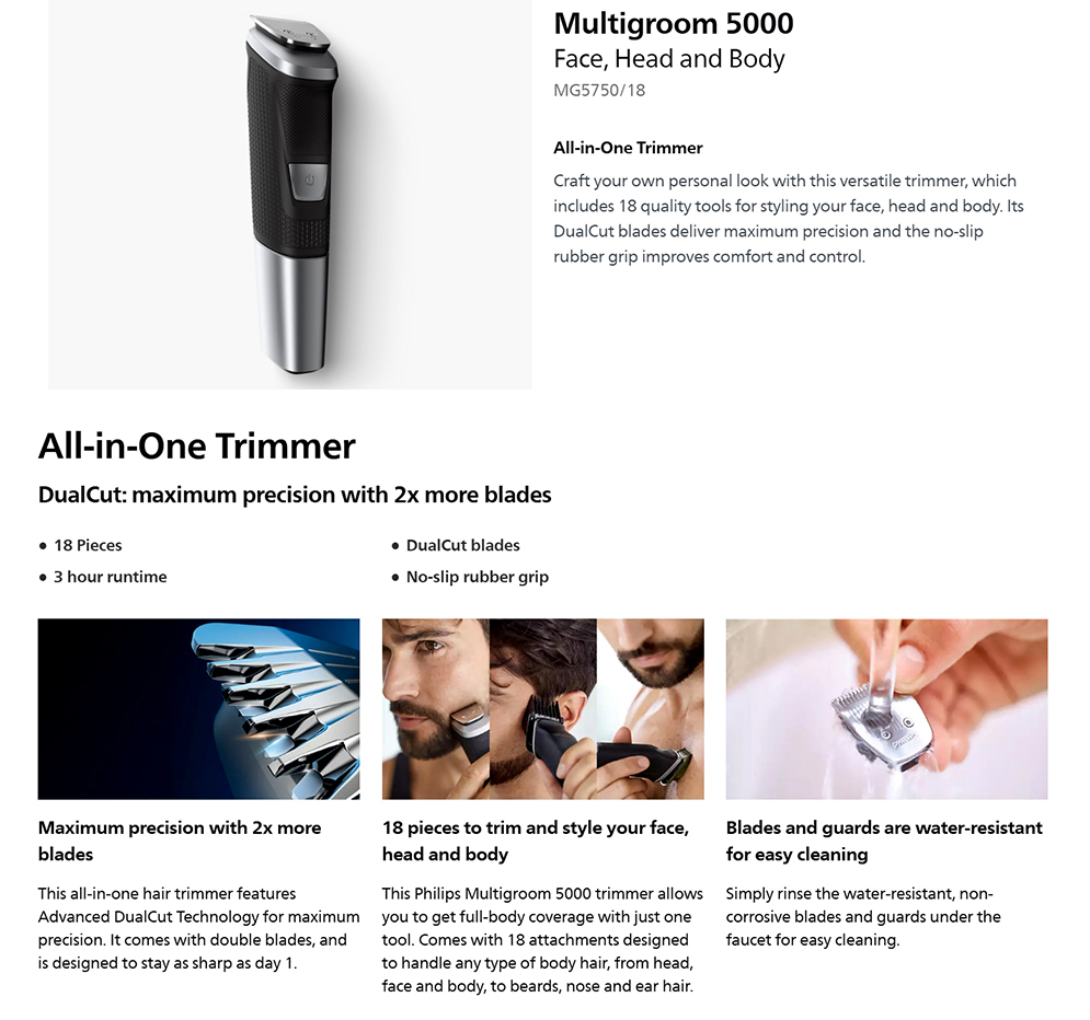 Philips MG5750/18 Multigroom 5000 Face, Head and Body for Men