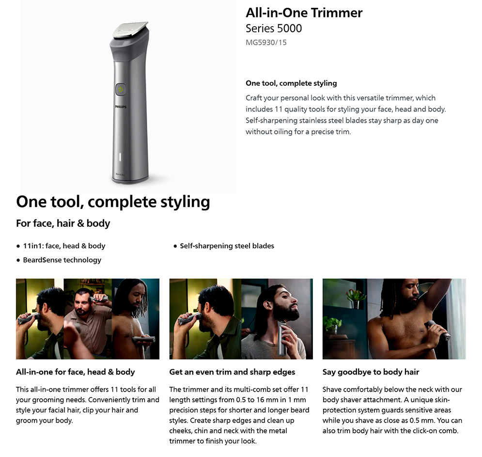 Philips MG5930/15 All-in-One Trimmer Face, Hair, and Body Series 5000 for Men