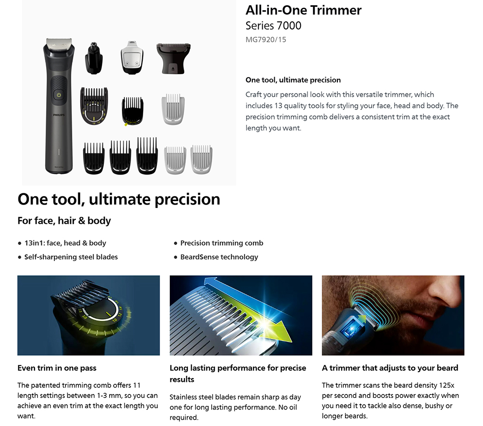 Philips MG7920/15 Multigroom All-in-One Trimmer Series 7000 for Men