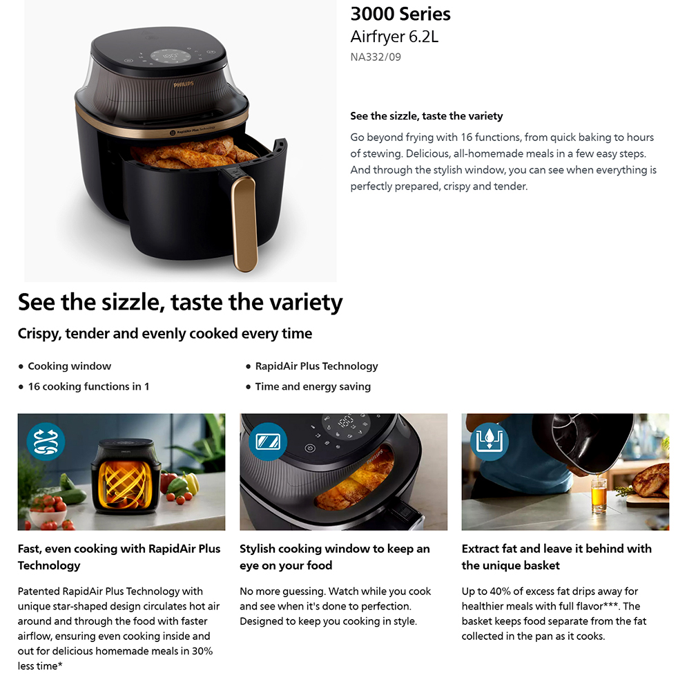 Philips NA332/09 Airfryer 3000 Series, See-through Cooking Window, Touchscreen, RapidAir Plus Technology