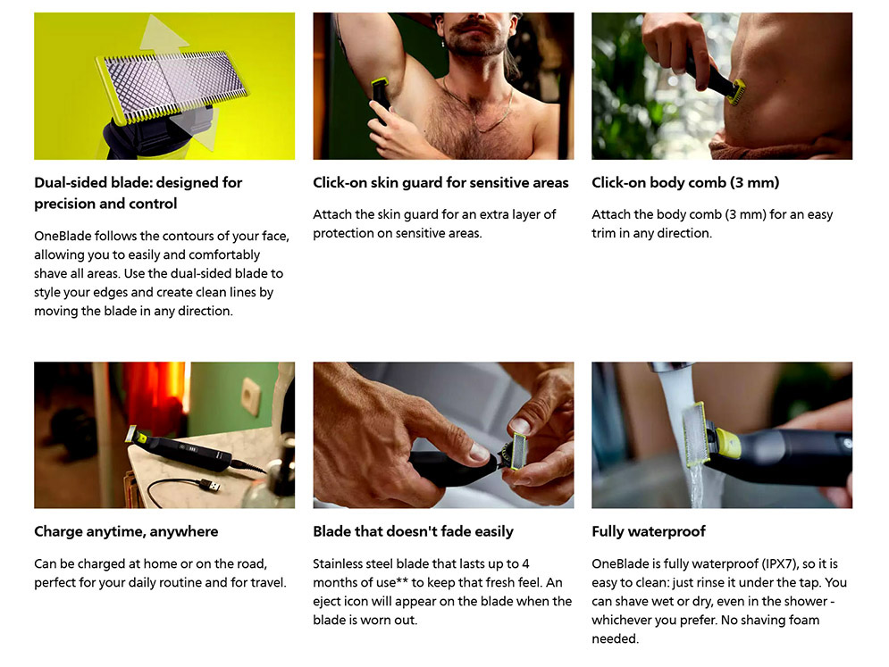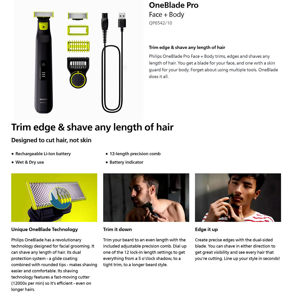 Philips QP6542/10 OneBlade Pro Hybrid Trimmer and Shaver Face + Body for Men