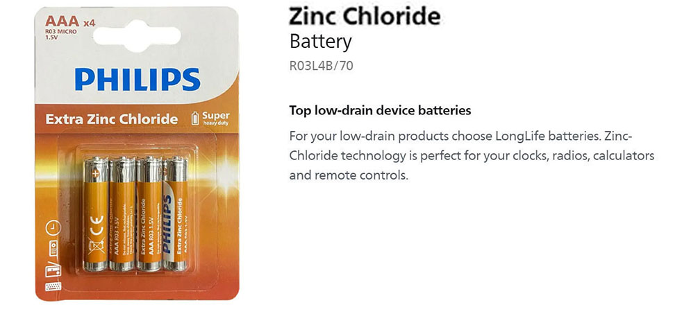 Philips R03L4B/70 AAA Extra Zinc Chloride Battery Bundle of 4 Pieces