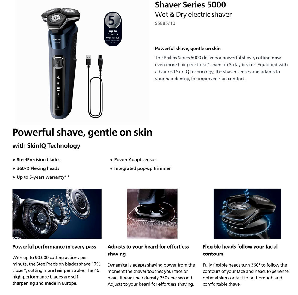 Philips S5885/10 Wet and Dry Electric Shaver with SkinIQ Technology Series 5000 for Men