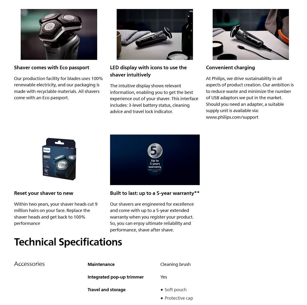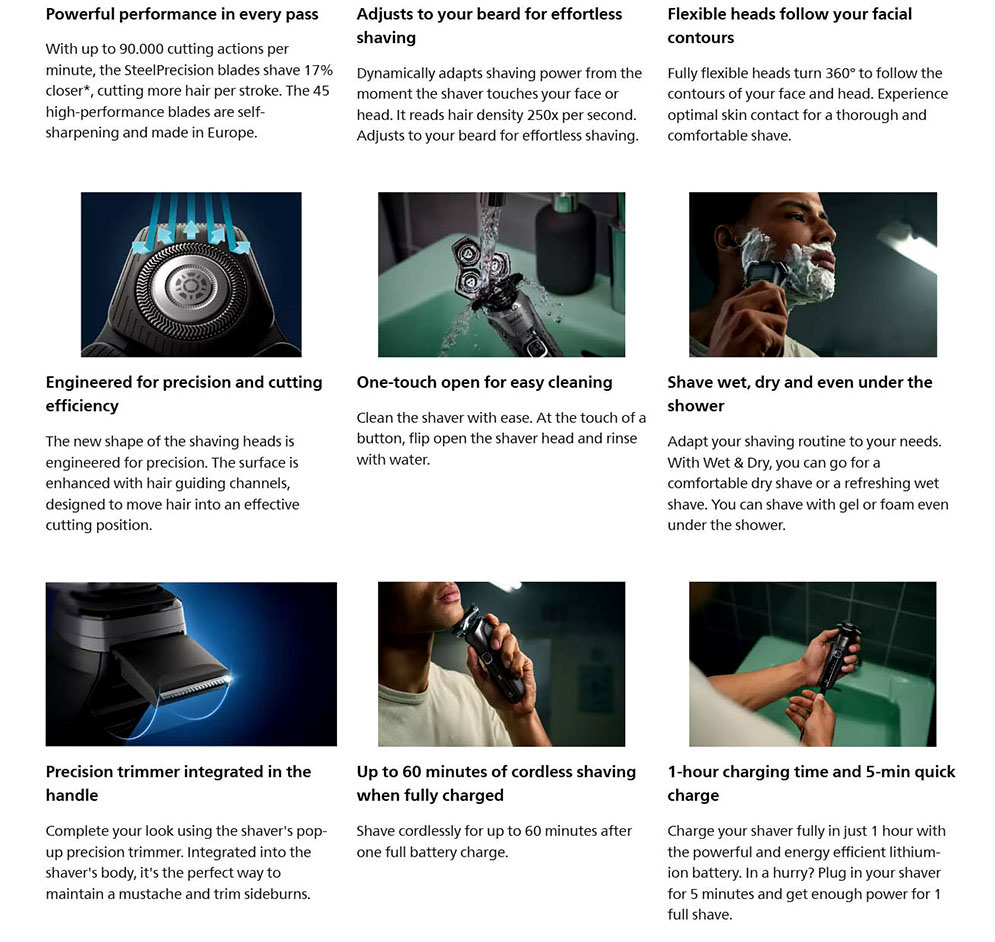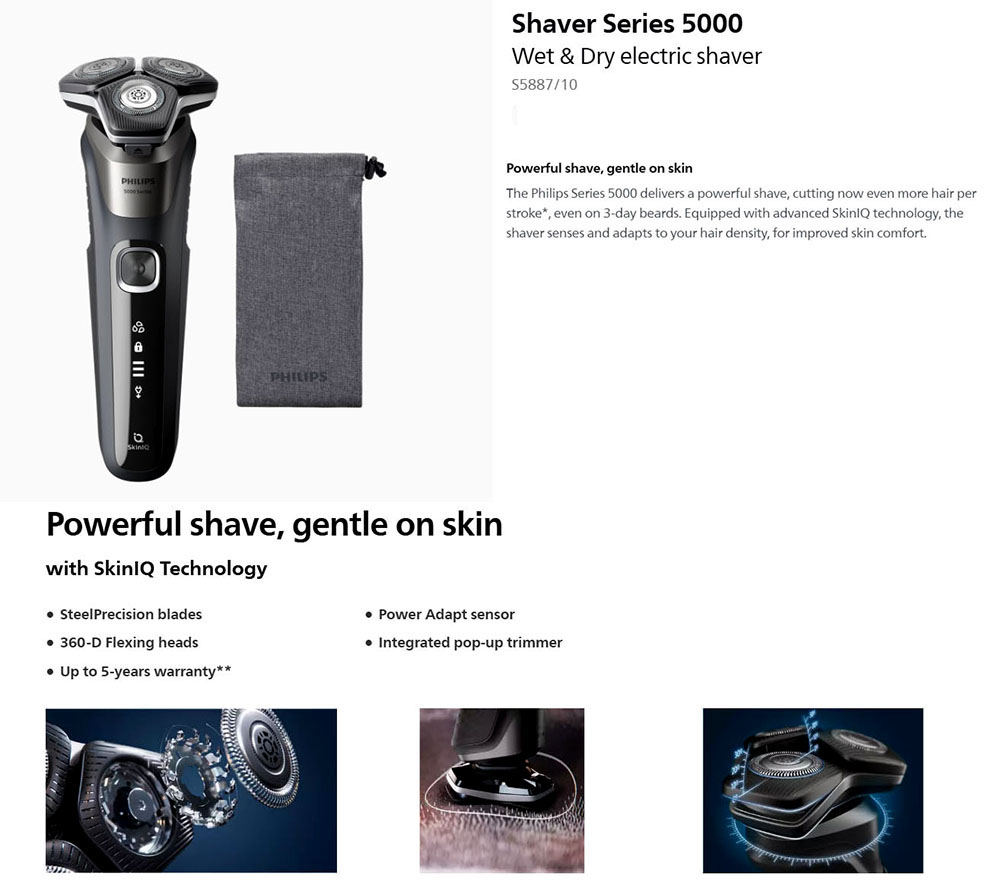 Philips S5887/10 Wet and Dry Electric Shaver with Smart SkinIQ Technology Series 5000 for Men